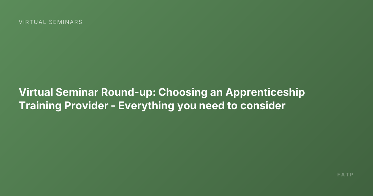 Virtual Seminar Round-up: Choosing an Apprenticeship Training Provider - Everything you need to consider